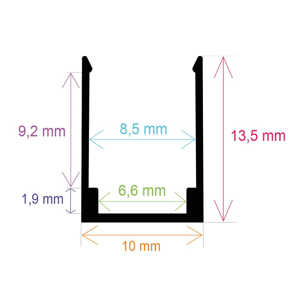 Perfil de aluminio U, especial para tira de neón led de 8x16mm