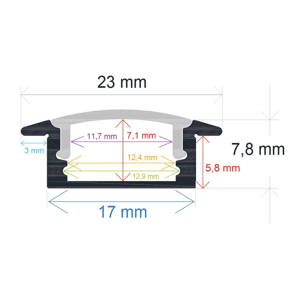 Perfil de aluminio empotrable de 2 metros para tira led.
